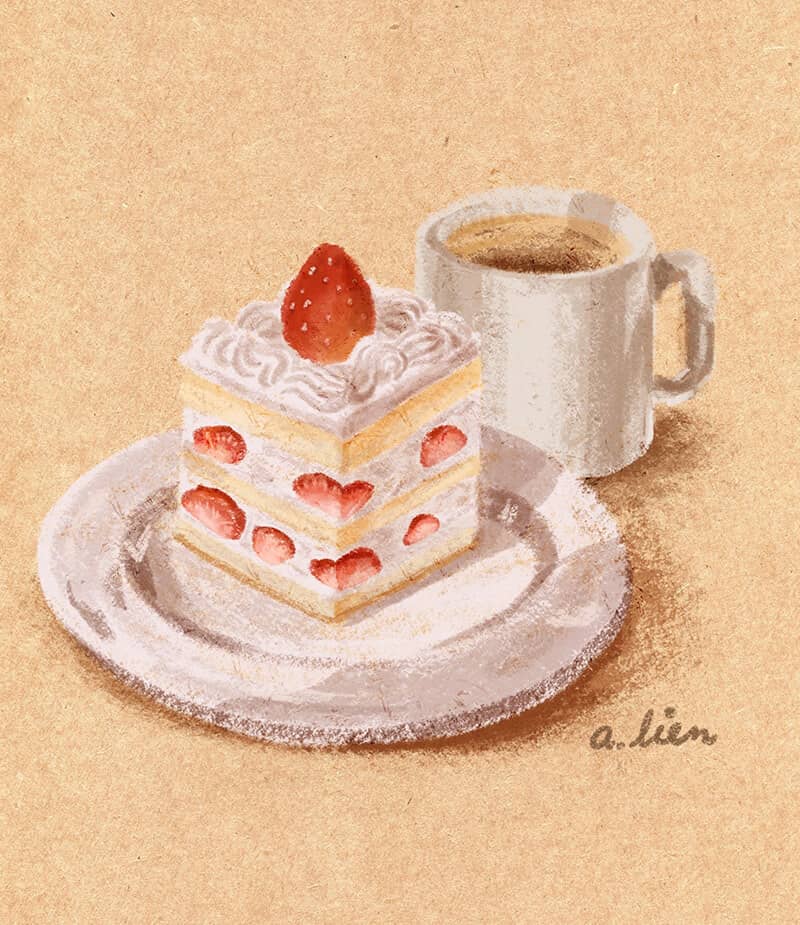 • 細節|有沒有特別的地方吸引你的目光?像是草莓、奶油漩渦、白白的糖粉?